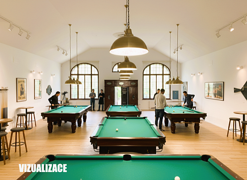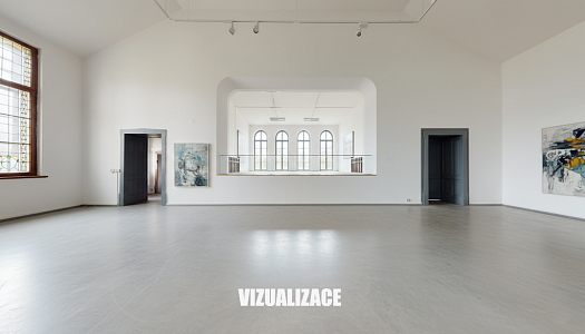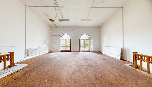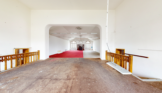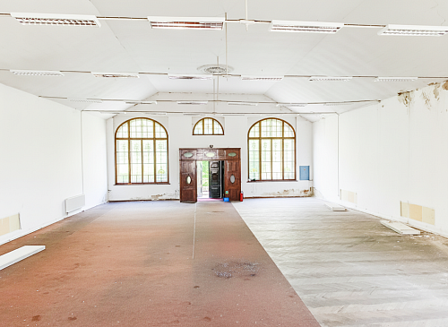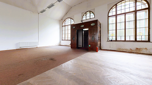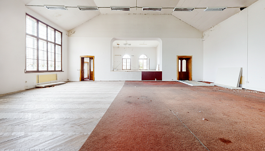 - 1. patro 387 m2 : velký sál s podiem, ideální pro kulturní, společenské či komunitní využití
