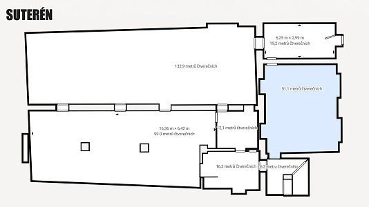 - suterén 363 m2 : rozsáhlé členité prostory s možností adaptace, část s okny orientovanými do zahrady (331 m²)