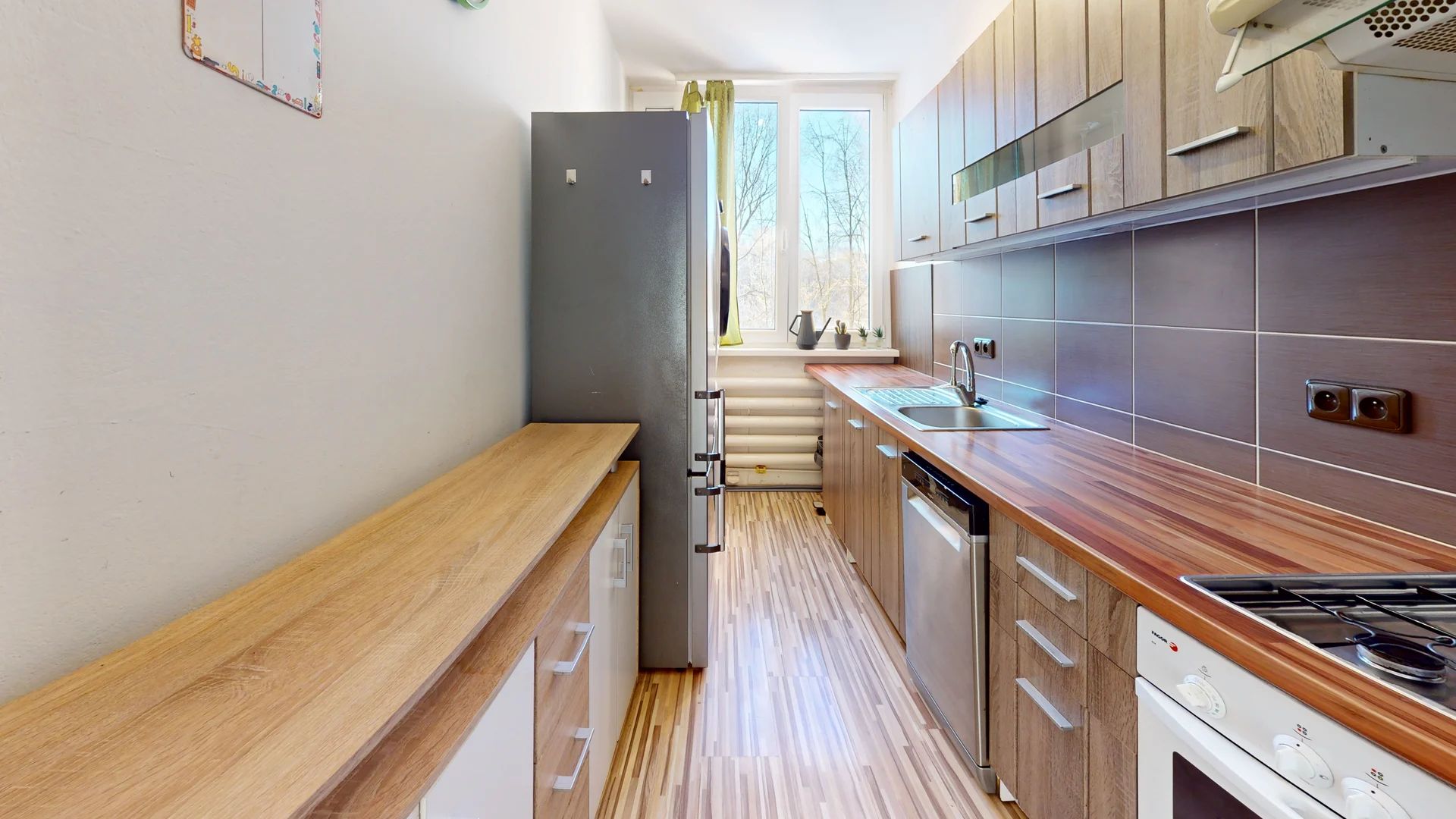 Byt je vhodný pro ty, kteří si chtějí domov zařídit podle svého – pronajímá se bez vybavení, k dispozici je kuchyňská linka a šatní skříň na chodbě. Velikostně vhodné max pro 2 osoby.