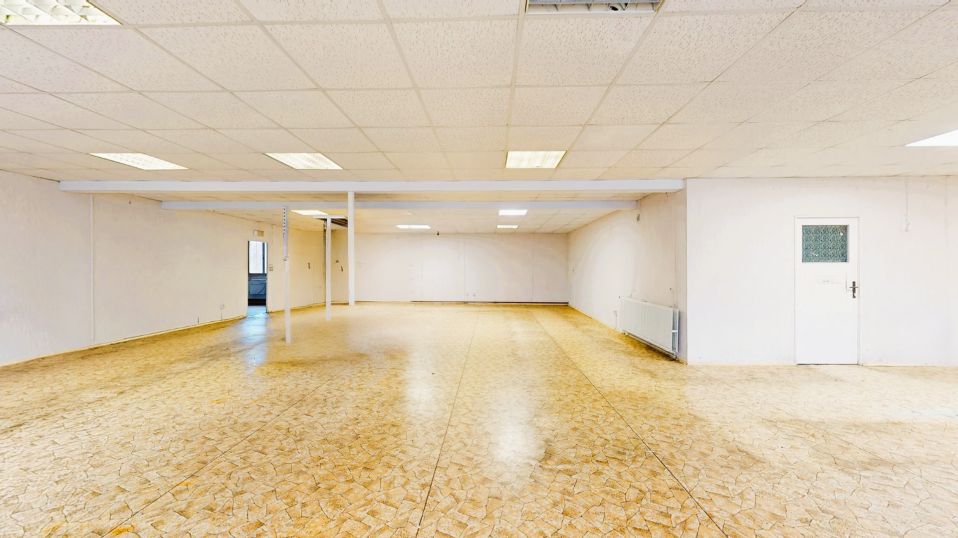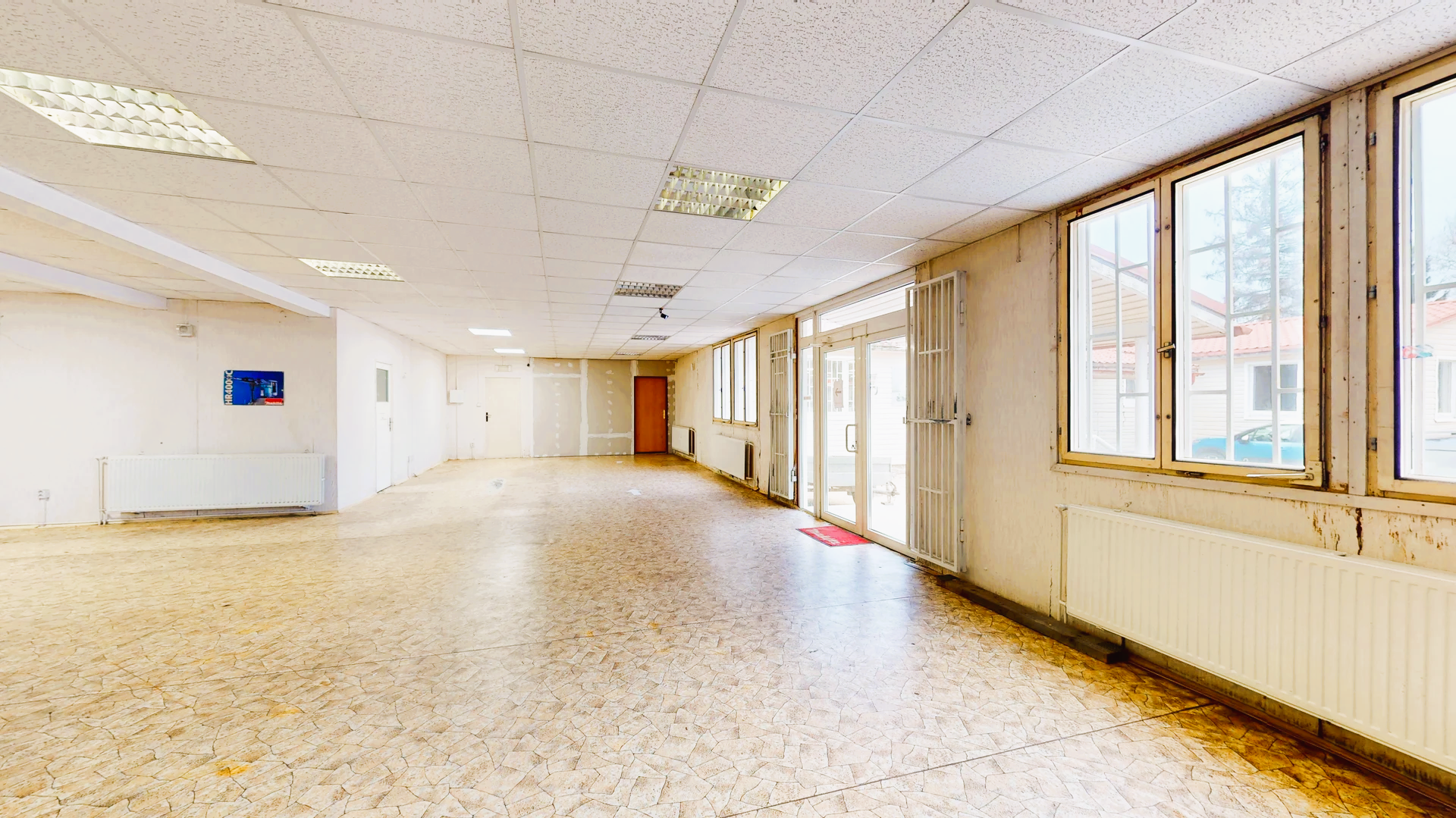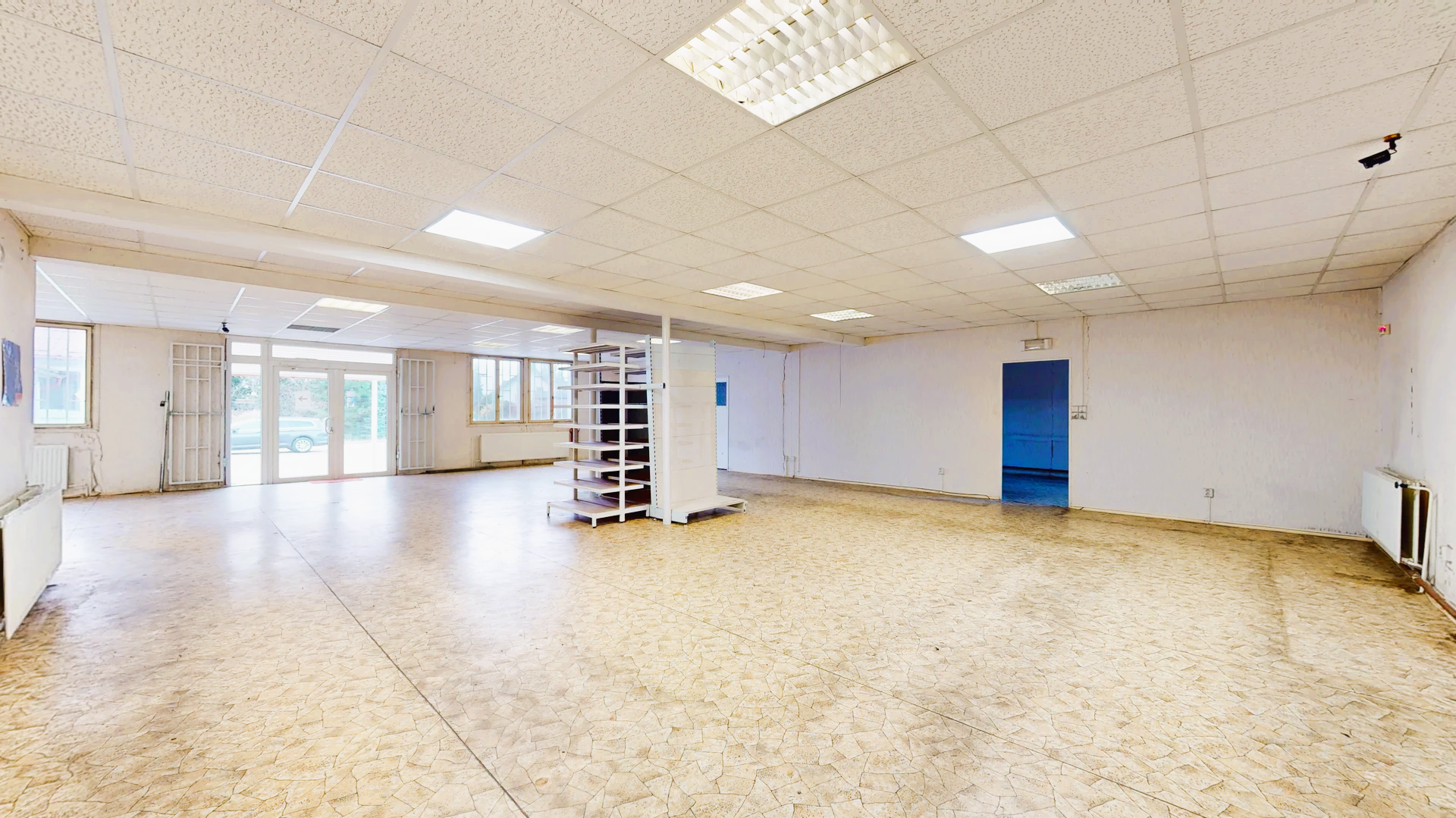 • 146 m² hlavní otevřený prostor s výškou stropu 2,4 m – ideální jako provozovna, showroom, dílna, prodejna nebo kancelářské zázemí