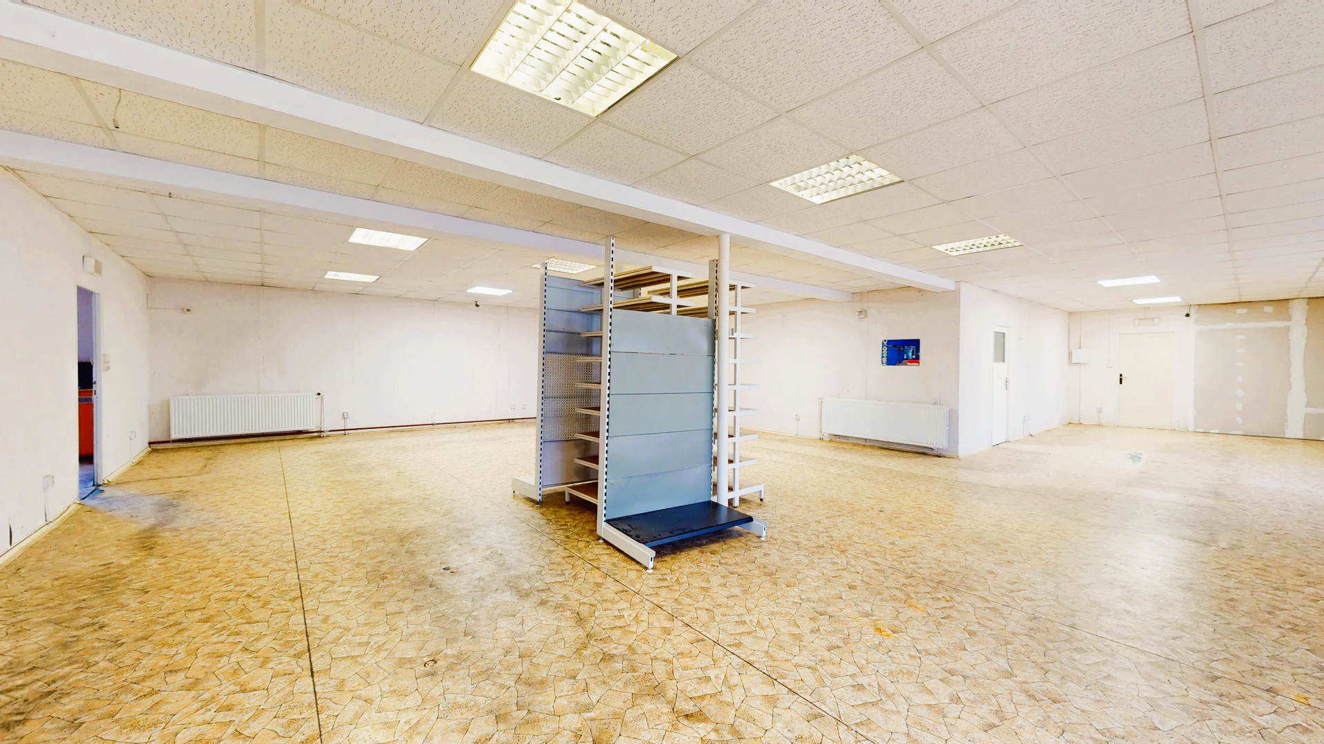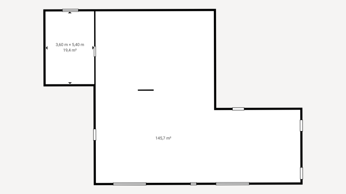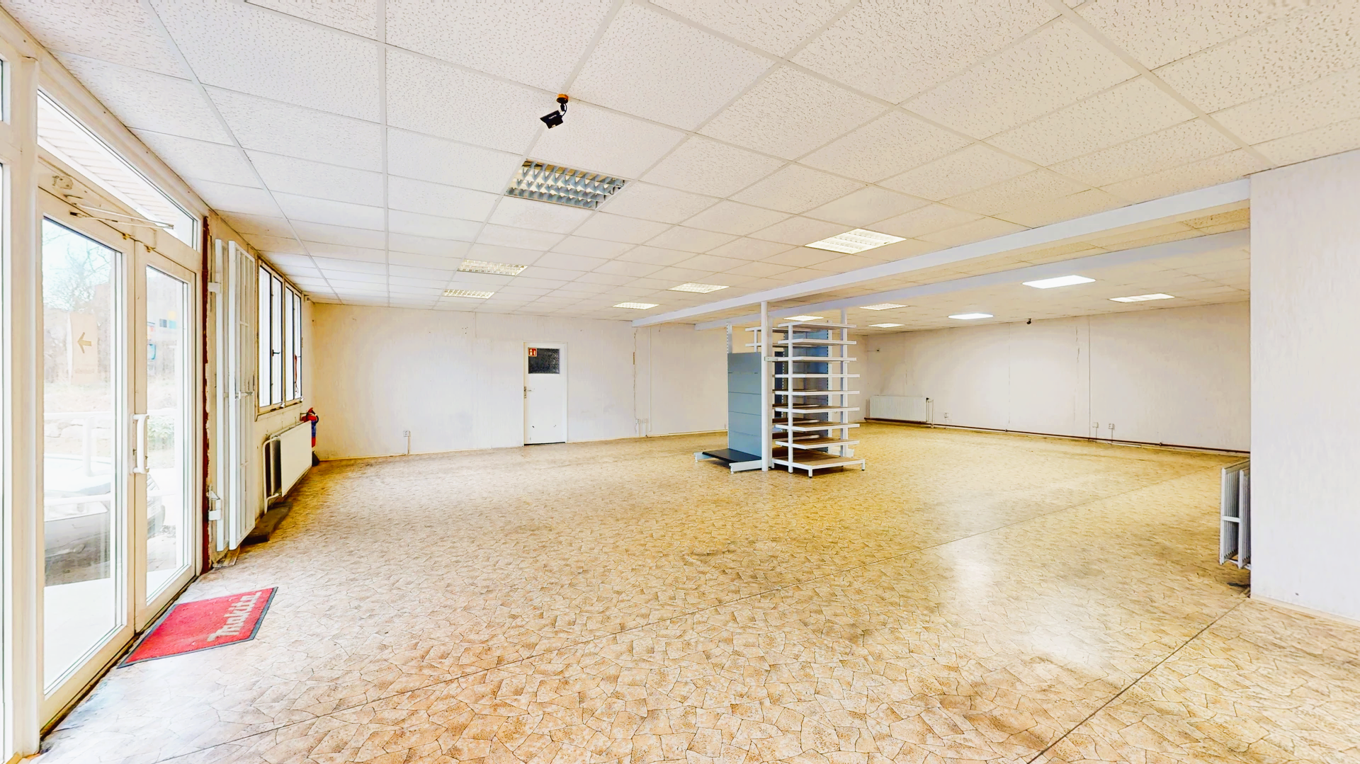 • 146 m² hlavní otevřený prostor s výškou stropu 2,4 m – ideální jako provozovna, showroom, dílna, prodejna nebo kancelářské zázemí