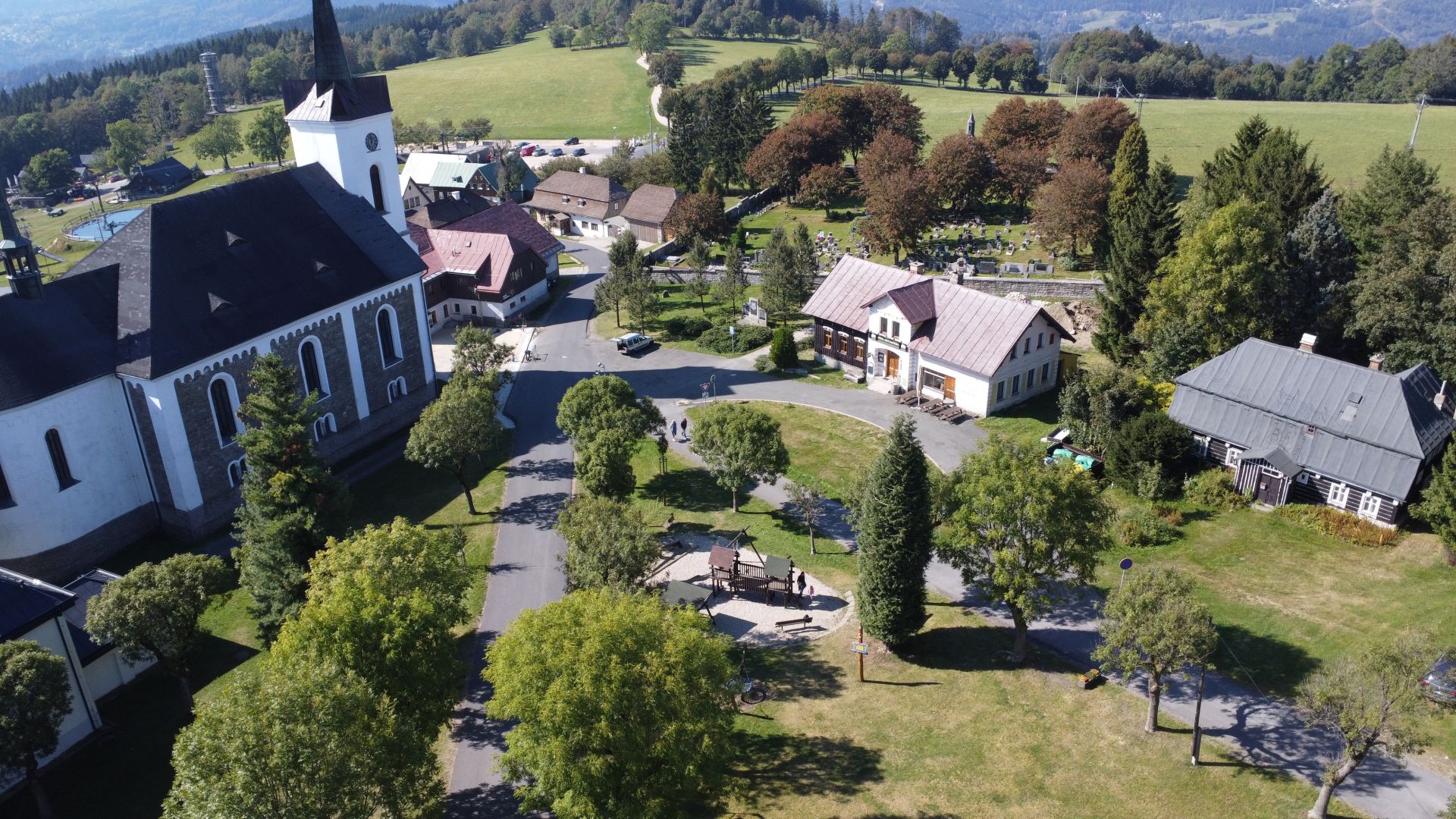 Strategická poloha přímo ve středu obce, naproti novorománskému kostelu sv. Víta a jen 150 metrů od populárního ski areálu U Čápa, představuje ideální místo pro podnikatelské aktivity.