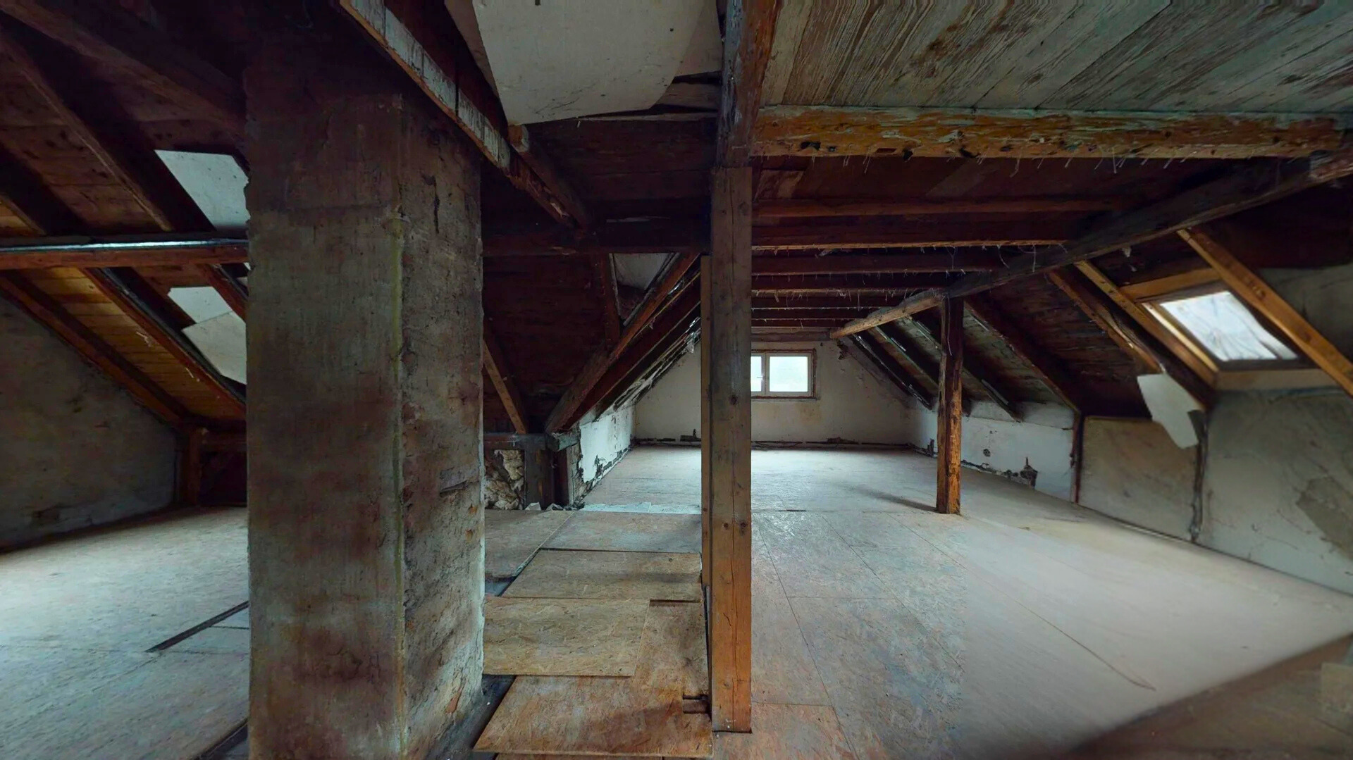 Podkroví: Prostor vhodný pro vybudování dvou ložnic a koupelny.